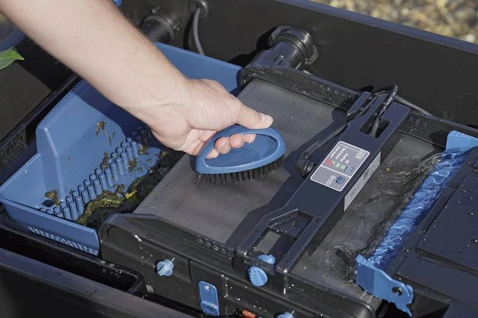 De Biotec Screenmatic 2 serie heeft een vuiltransport band die het vuil uit uw vijver opvangt en automatisch afvoer naar de vuilbak.