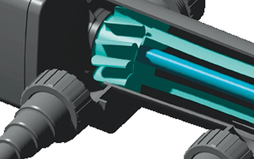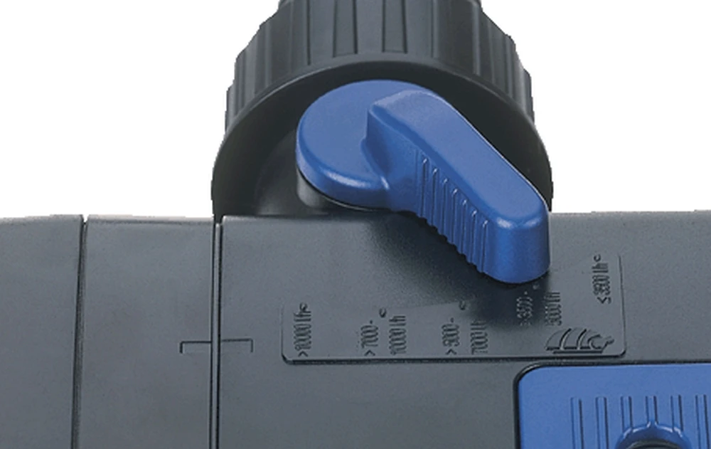 De waterdoorstroming is handmatig te sturen, automatische reinigingsrotor voorkomt vuilafzetting in de UVC lamp, een veiligheidsschakelaar deactiveert de UVC-lamp automatisch.