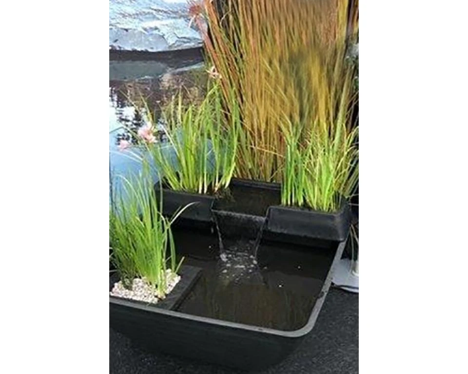 De minivijver met waterval kan op veel plekken rondom tuin en terras en zelfs indoor en op een balkon worden geplaatst. Lichtgewicht, dus gemakkelijk verplaatsbaar.