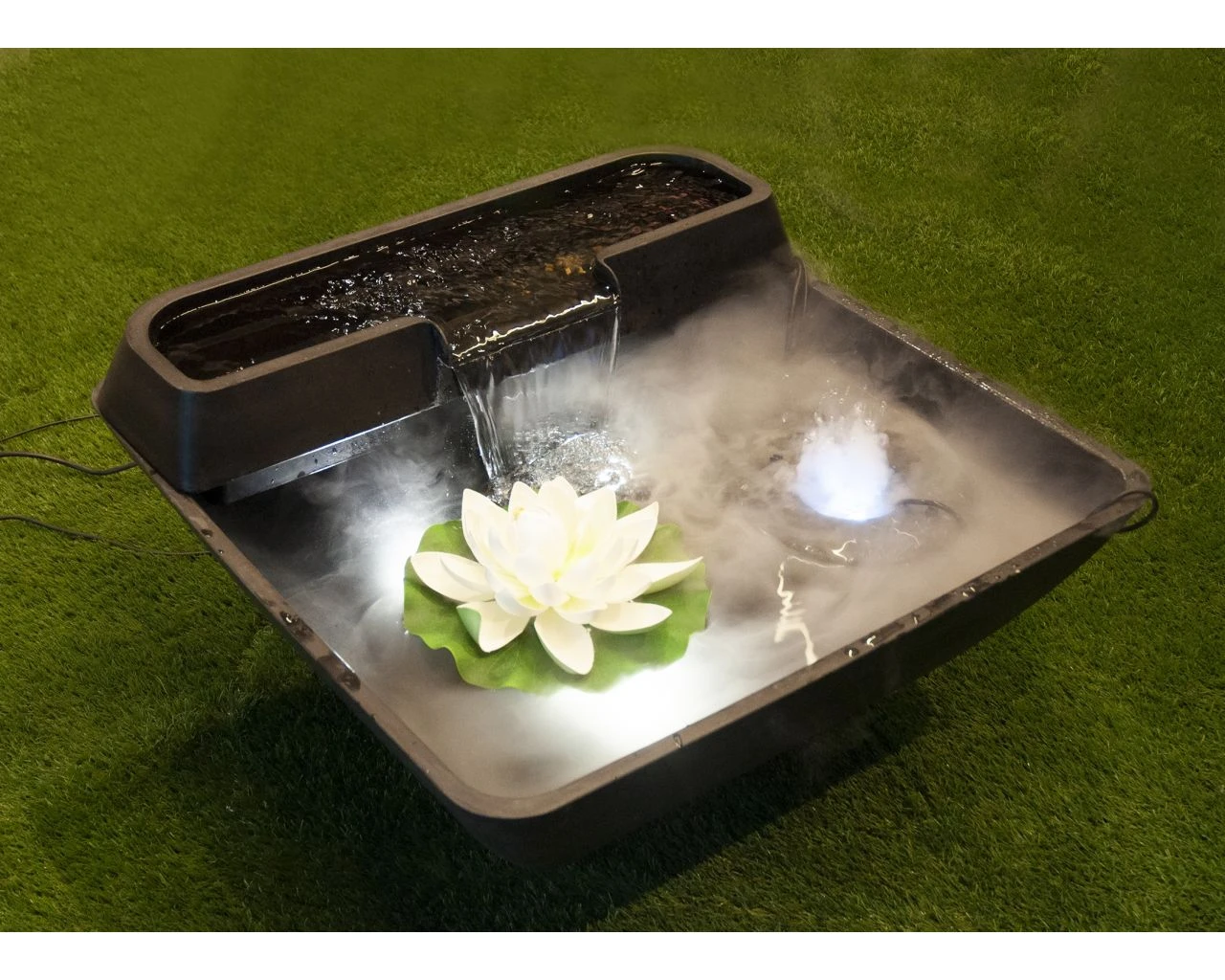 Maak de minivijver op het balkom of terras extra sfeervol met het Velda Welkin Pond Light en de Velda mistmaker. Vul de mini-vijver met de bijgeleverde fontein met panten, verlichting of een mistmaker, alles is mogelijk!