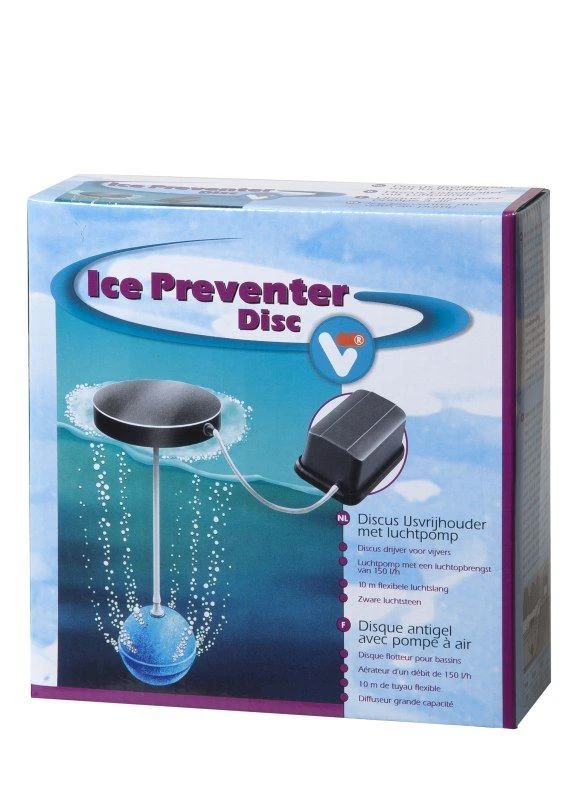 De Discus Ice Preventer is een luchtpomp met een capaciteit van 100 liter per uur. De luchtpomp wordt geleverd inclusief discus drijver, 10 meter luchtslang en een zware luchtsteen. De Discus ijstvrijhouder houd de vijver ijsvrij op één positie en vergroot u de overlingskansen van uw vissen.